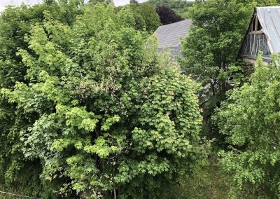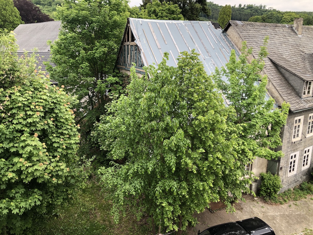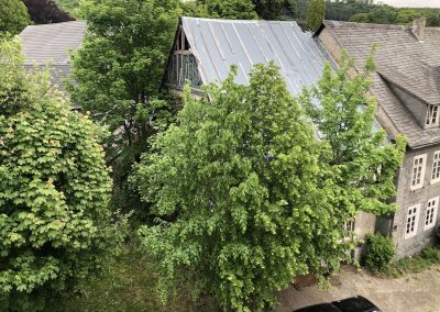 Blick vom Dach auf Grundstück links, April 2023